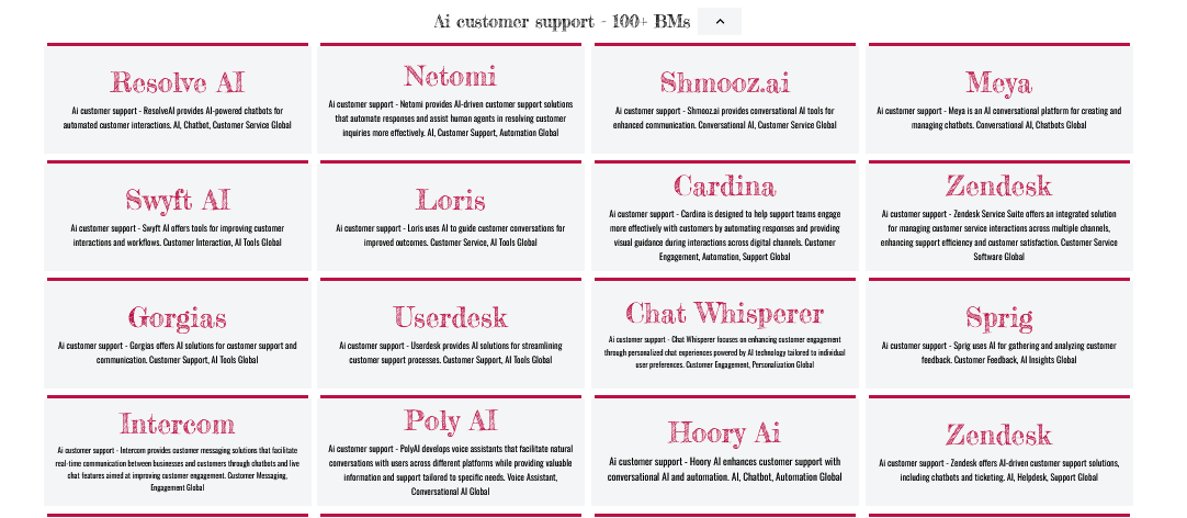 Ai Websites - Ai customer support Websites - 100+ BMs