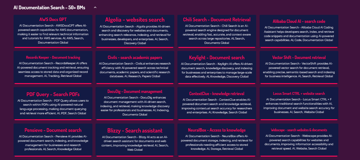 Stop digging through endless docs. This curated list of 50+ AI documentation search website bookmarks connects you with intelligent platforms that let you query, navigate, and retrieve information from technical, internal, or public documentation—instantly and accurately.