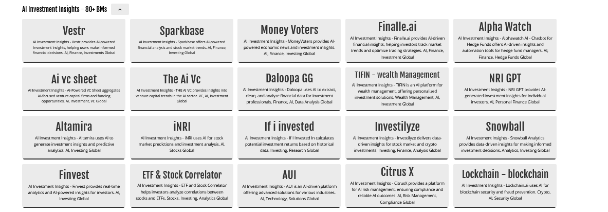 AI Investment Insights Websites Bookmarks 80+ BMs
