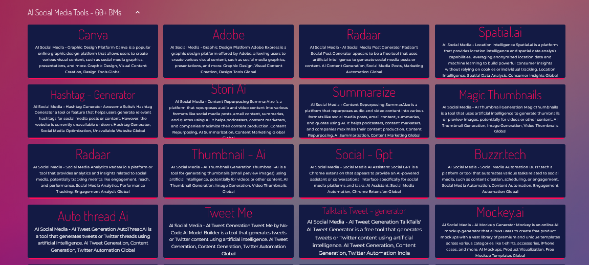 Ai Websites - AI Social Media Tool Websites- 60+ BMs