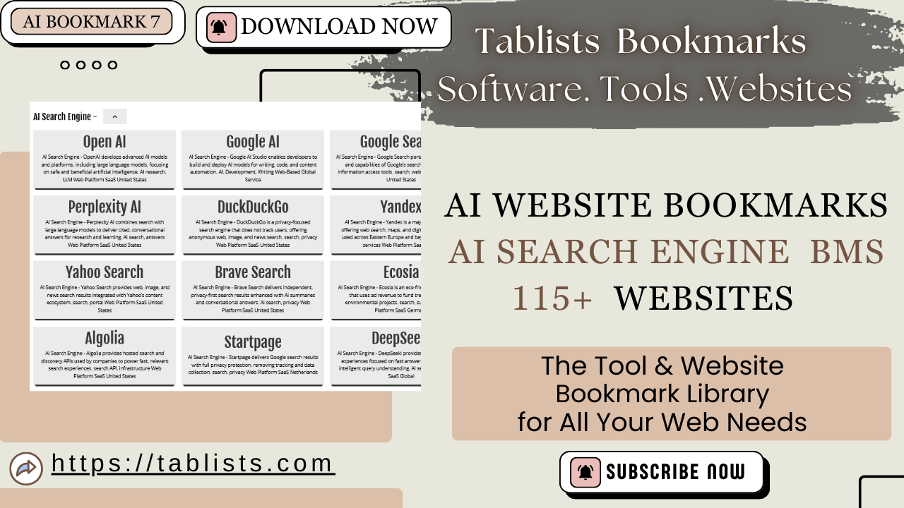 Our AI Search Engine Tools & Resources offer a carefully curated collection of AI-powered tools, organized for your convenience. Eliminate the hassle of managing multiple tabs and distractions.