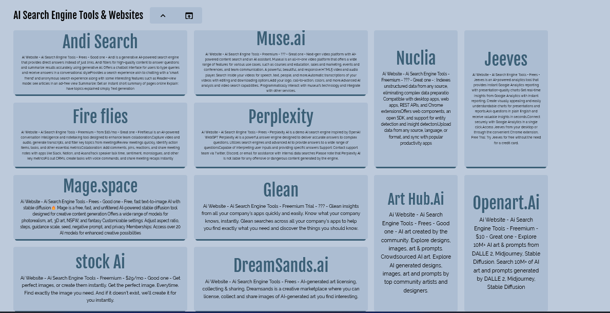 - Streamlined Learning: Quickly access a curated selection of AI search engine websites and tools. It’s like having a search optimization library at your fingertips.