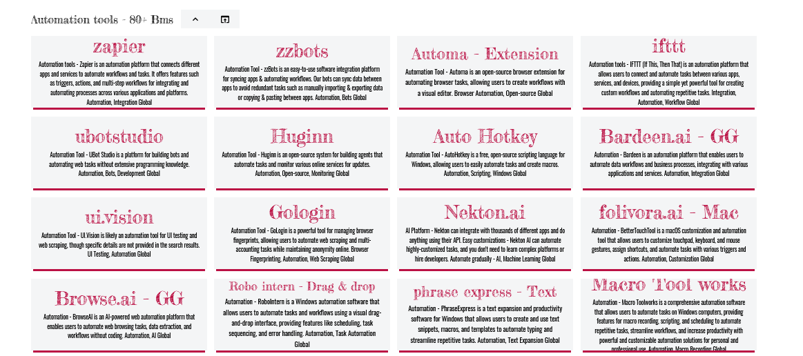 Automation – Automation Tools Websites – 80+ BMs
