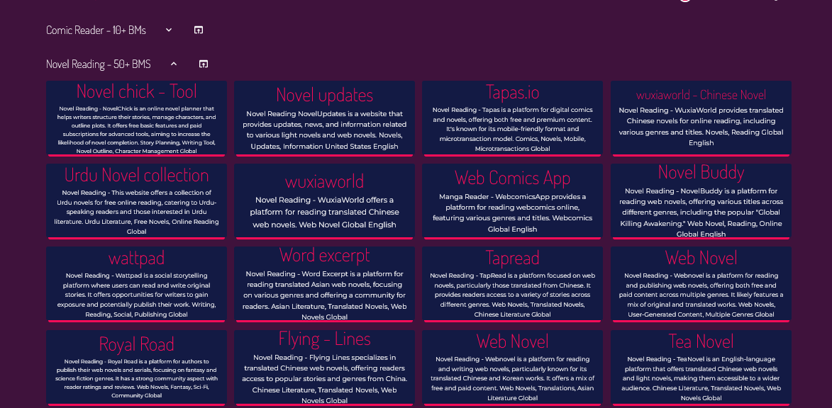 With these 120+ bookmarks, you’ll always have fresh content to explore, from classic series to newly released chapters. Perfect for manga, novel, and comic lovers!