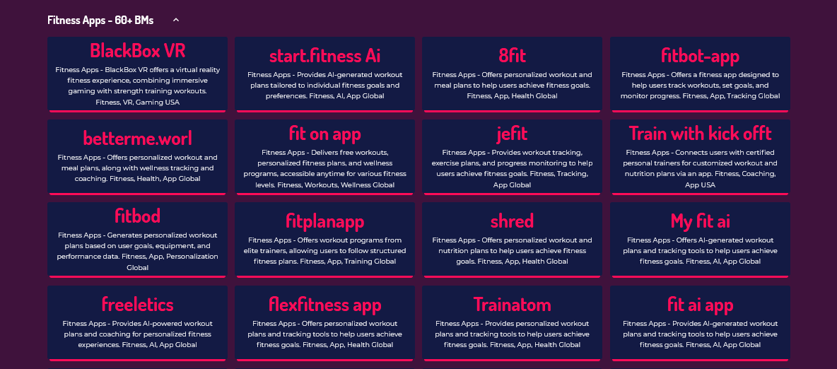 AI Websites - Fitness Apps Websites - 60+ BMs