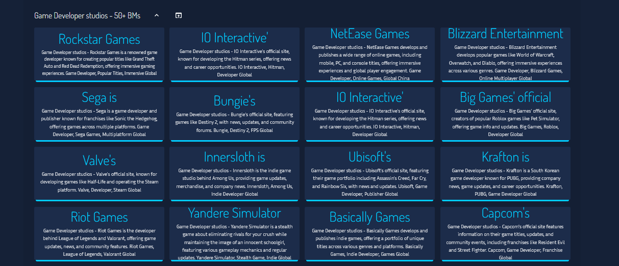Game Developer studios Websites - 50+ BMs
