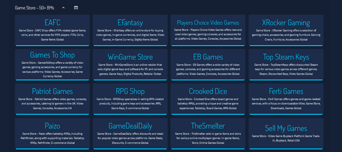 Game Store Websites Bookmarks - 50+ BMs
