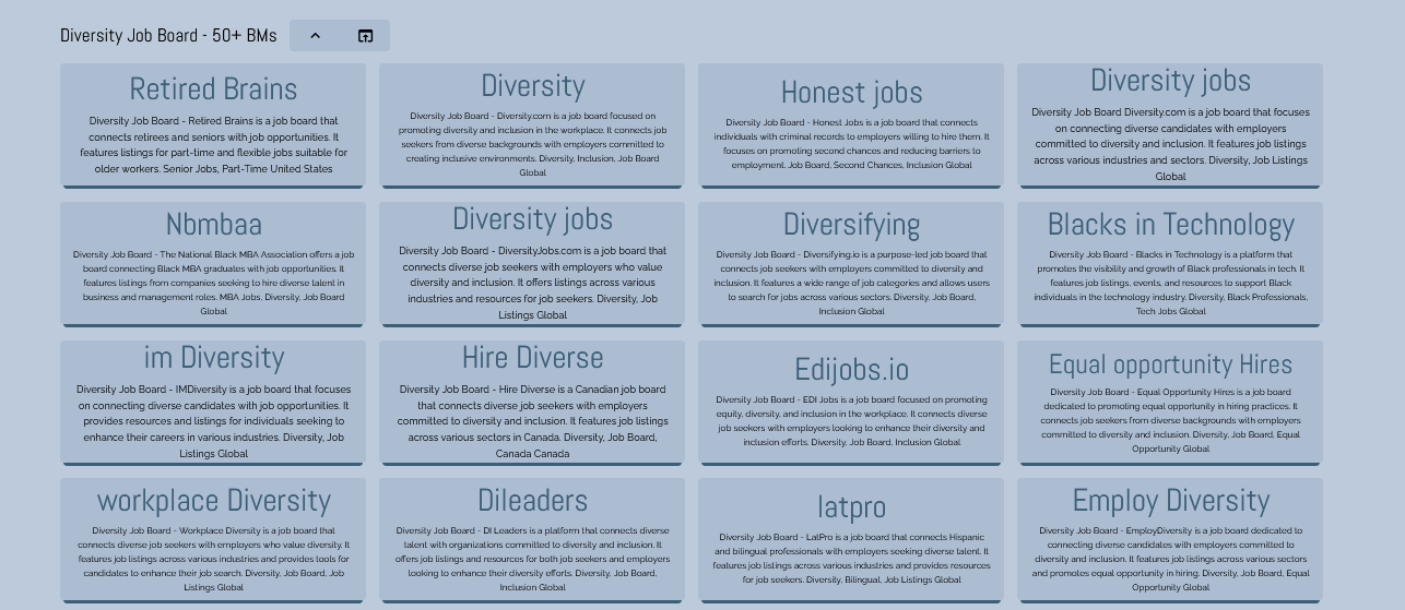 - Inclusive Opportunities: Access bookmarks featuring job boards with opportunities specifically aimed at fostering diversity in the workplace, including roles for women, minorities, individuals, and people with disabilities.