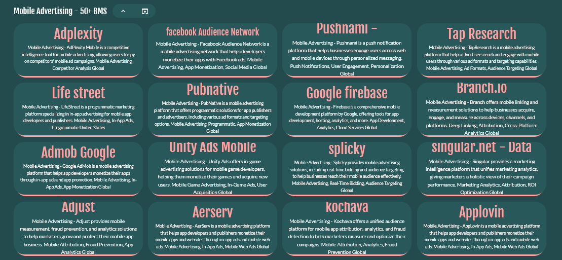 Discover 50+ mobile advertising platforms that empower businesses to engage customers through mobile-optimized ads across apps, websites, and more. These platforms offer targeted campaigns, mobile app promotion, and cross-channel reach to enhance visibility.