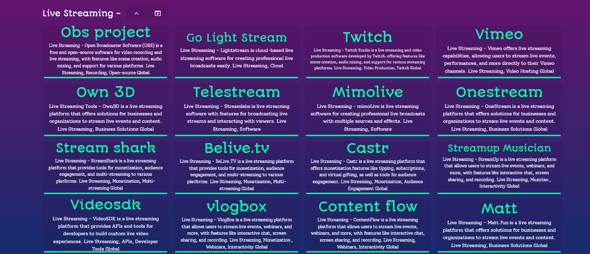 Discover 70+ Live Streaming Tools to enhance your streaming experience, from platforms and broadcasting software to tools for improving stream quality. These resources help you stream professionally, create engaging content, and reach a wider audience across various platforms.
