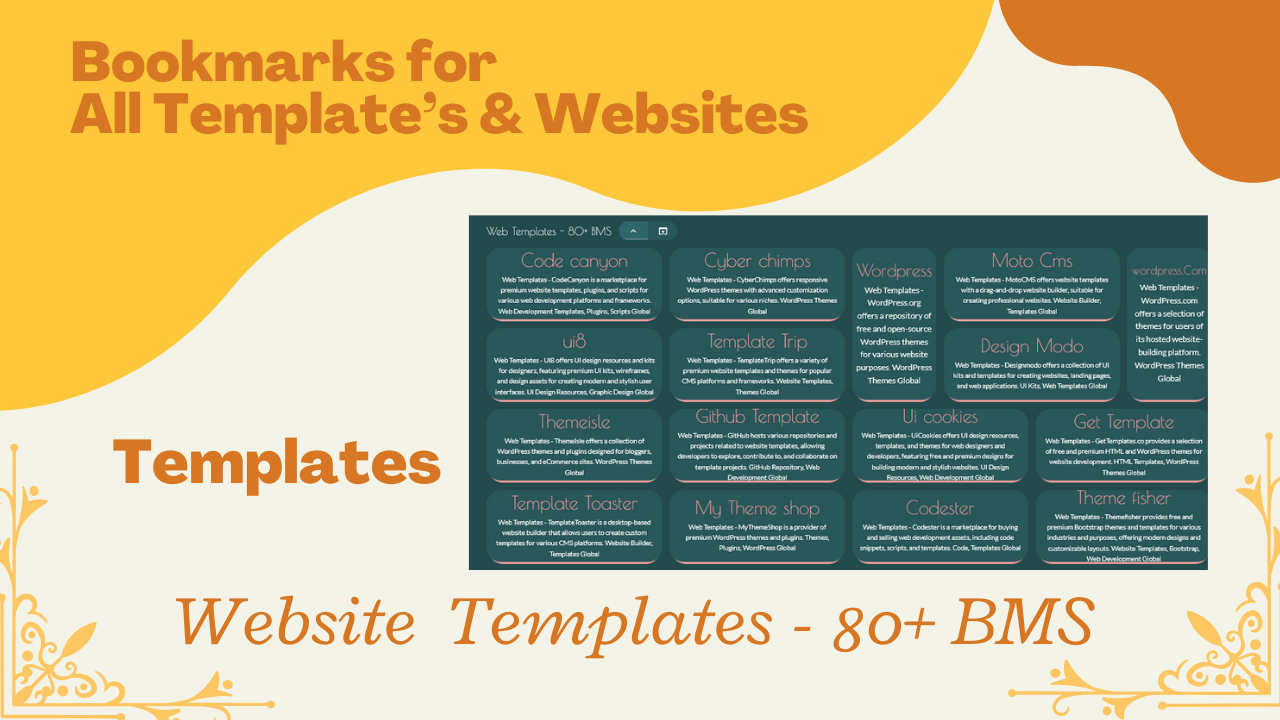 With our Web Templates Bookmarks, you’ll have all the resources you need to create a stunning, functional, and professional website quickly and efficiently.